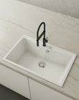 El diseño depurado y los aires minimalistas de las grandes urbes inspiran este fregadero de resina Roc Stone®. Además, su acabado en brillo aporta una sensación de mayor espacio en la cocina.