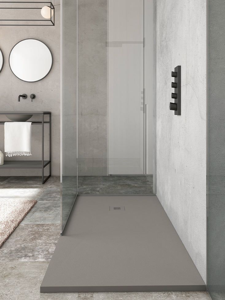 Este plato de ducha de resina proporciona el mayor disfrute y confort gracias su sencillo diseño, que fomenta la limpieza visual. Una superficie antideslizante y cálida enriquecida con la calidad táctil que aportan las texturas pizarra y sand.