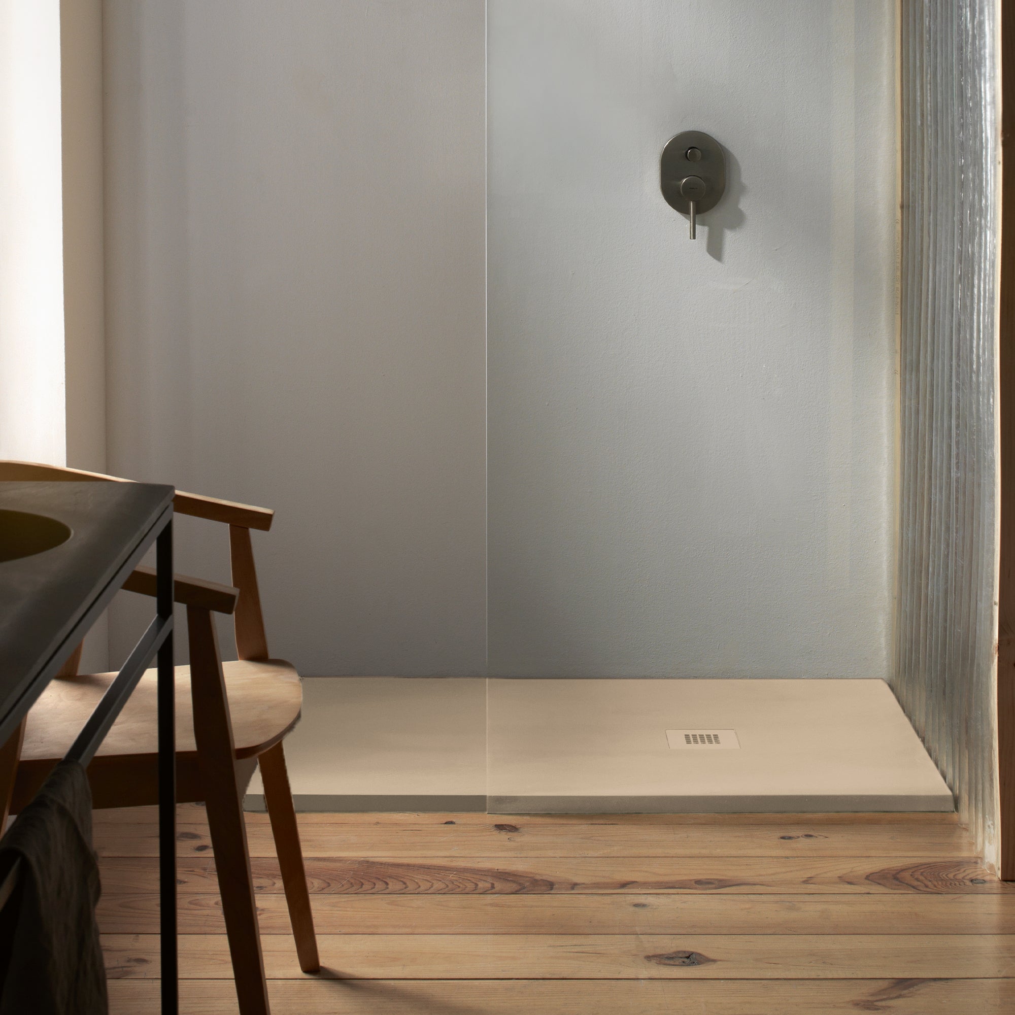Este plato de ducha de resina proporciona el mayor disfrute y confort gracias a su sencillo diseño, que fomenta la limpieza visual. Una superficie antideslizante y cálida enriquecida con la calidad táctil que aportan las texturas pizarra y sand.