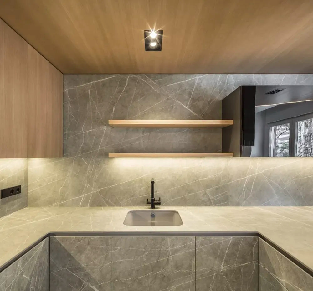 La colección de fregaderos Gandia se integra en la cocina para aportar continuidad y orden, convirtiendo tu encimera en una superficie lisa e infinita.